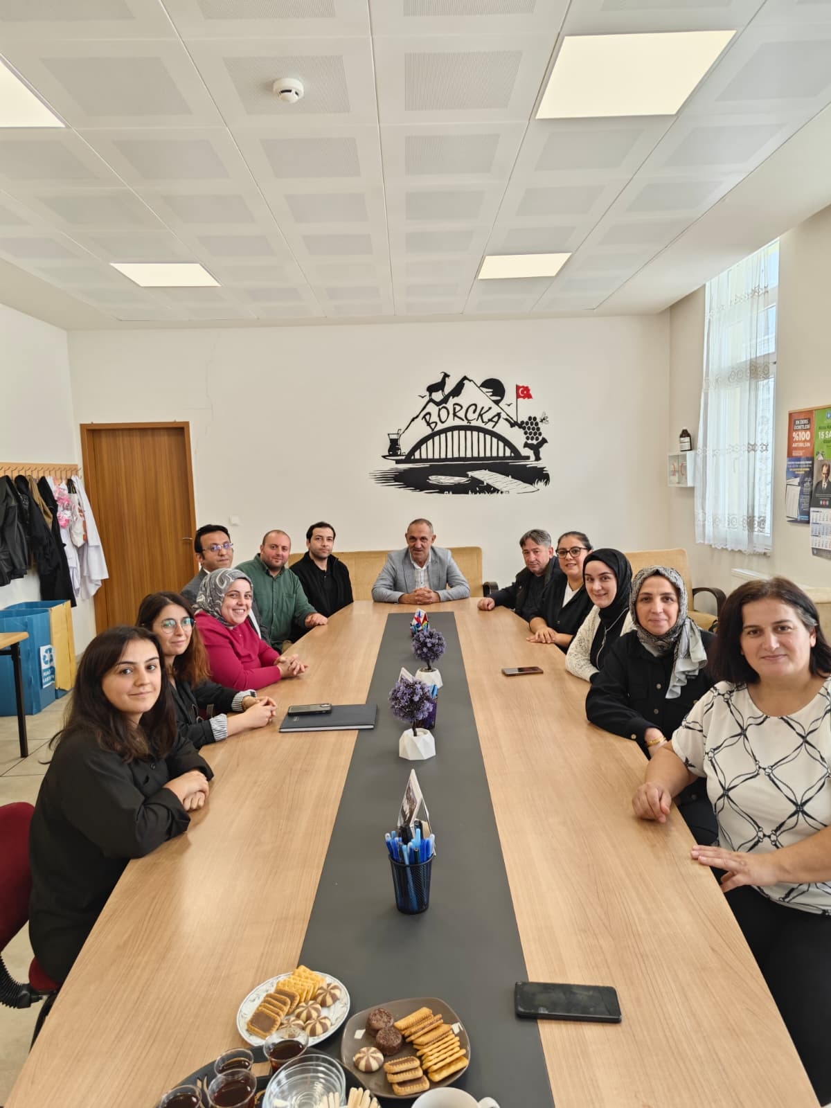 Öğretmenler ile bir araya gelerek kısa bir toplantı gerçekleştirdikten sonra ziyaretlerini sonlandırdı.
