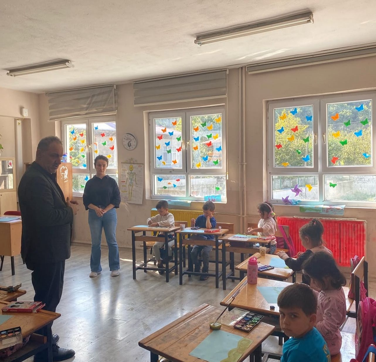Müdürümüz, öğrencilerle sınıflarında bir araya gelerek bir süre sohbet etti ve öğrencilerin sınıf içi çalışmalarını inceledi. Ardından öğretmenler ve yardımcı personel ile bir araya gelerek kısa bir toplantı gerçekleştirdi.